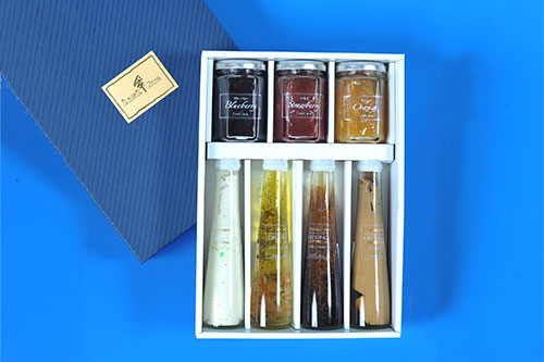 フルーツ本来の色と風味を大切に香料を使用せず、甘さを抑えて仕上げたジャムと素材の持ち味を生かした特徴のあるドレッシングの詰め合わせです。
