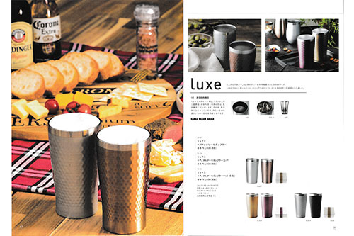真空耐熱構造 リュクスメタルサーモは、ステンレスの二重構造。本体内側と外側の間は真空構造になっています。 その為、熱が外に伝わりにくいので冷たいものも温かいものも飲み頃温度を保ちます。 大人から子供まで、男女問わずに一番利用頻度の多い350ml サイズ。 上質なブロンズ&シルバーに、カジュアルなピンク&ゴールドのカラーが追加になりました。